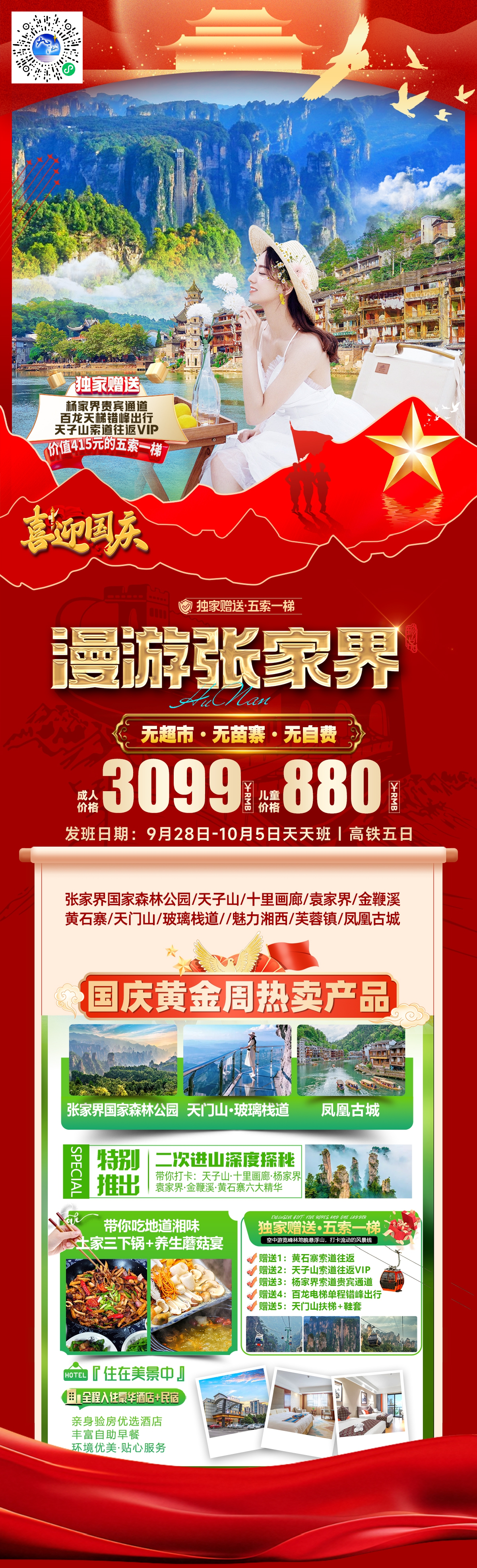 10.1国庆节漫游张家界、天门山、凤凰古城高铁5日游纯玩_武汉九洲国旅给您不一样的精彩旅途13971666108