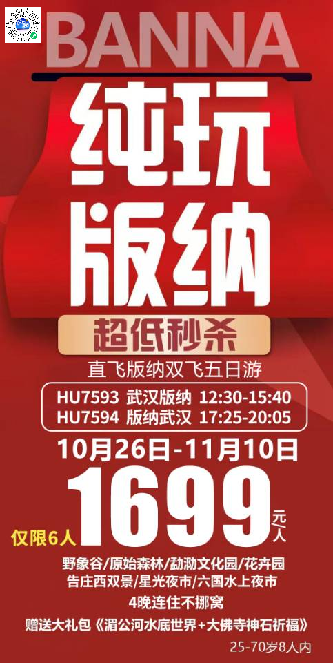 野象谷/原始森林公园/六国水上夜市/热带花卉园/告庄双景+星光夜市/勐泐文化园 赠送:湄公河水底世界+大佛寺祈福 全程4晚酒店连住不挪窝